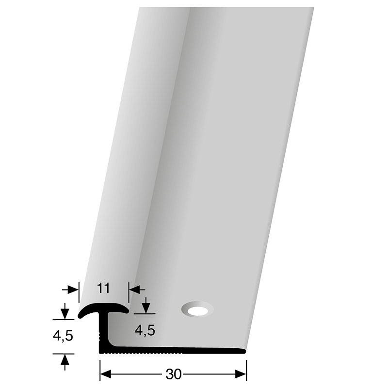 PVC overgangsprofiel schroef 2,5-5 mm alu RVS