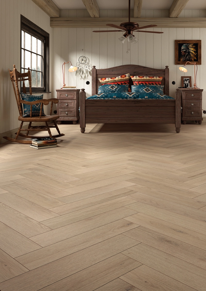 De afwerking met 4-v versterkt het plankbeeld en geeft extra diepte aan de vloer.