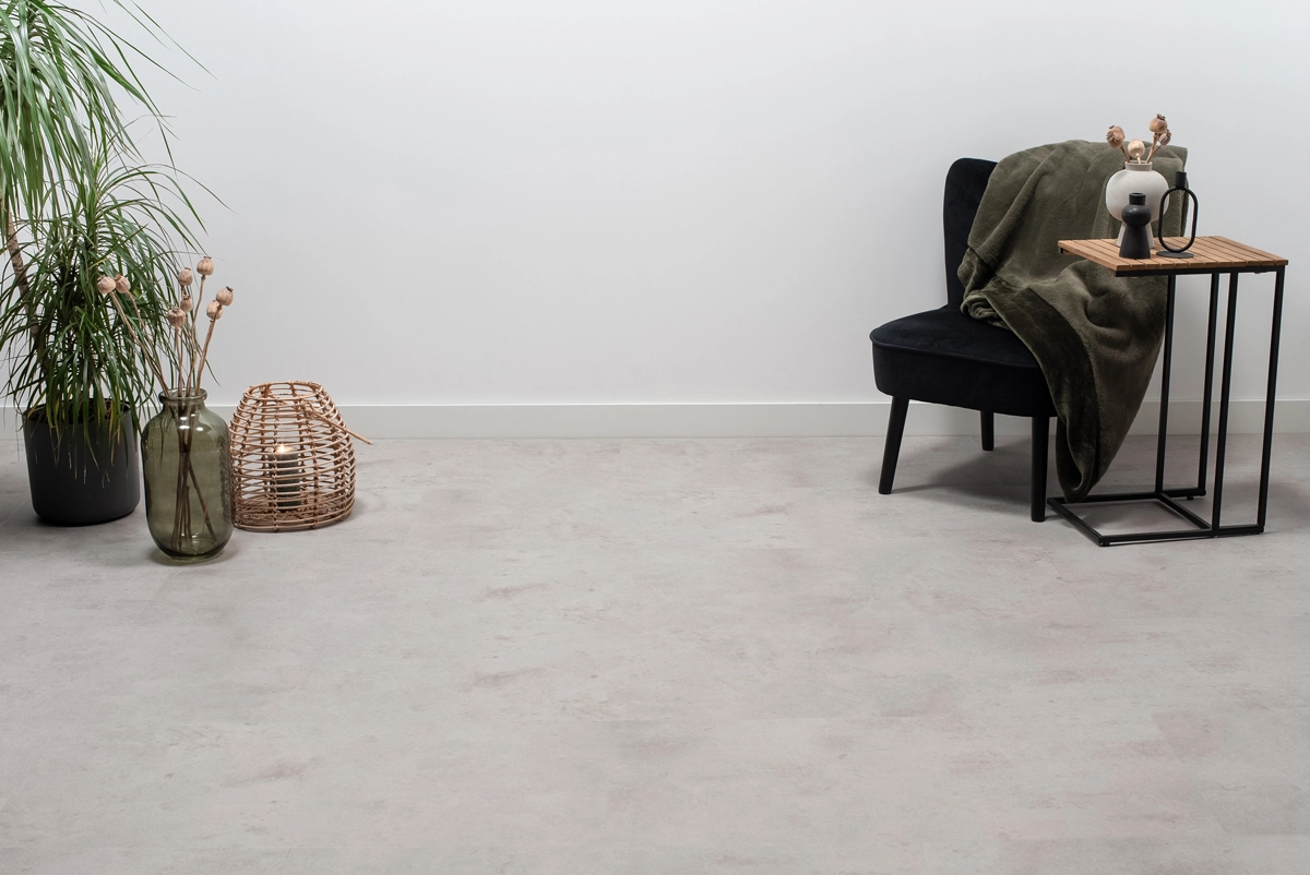 Floer Tegel PVC – Betonlook Lichtgrijs – PVC Plak – vinyl of PVC vloer